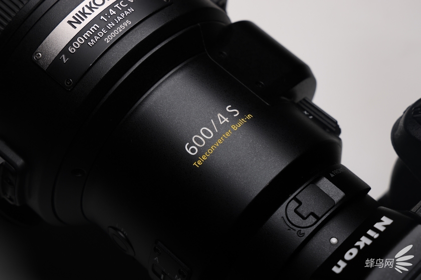 值得注意的是,尼克尔 Z 600mm f/4 TC VR S内置了1.4倍的增倍镜,并拥有独立的增倍镜切换拨杆,这一点和此前尼克尔Z 400mm f/2.8 TC VR S的功能是完全一样的,并且增倍镜还拥有锁定拨杆,可以防止我们在使用的时候误碰。这里就多说一点,这支镜头的焦距是600mm,开启增倍镜之后是840mm,如果在开启尼康Z 9机身的1.5倍裁切,则可以获得1260mm的焦距。
