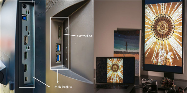 明基SW270C从摄影师的角度出发,除了有象征专业的植绒遮光罩可以减少环境光的干扰,显示器还自带SD卡槽和typeC接口反向供电,就像一个摄影人专属的拓展坞,让你干净还原整洁的工作台。人体工学设计支持竖屏显示,横竖构图修图都无压力。