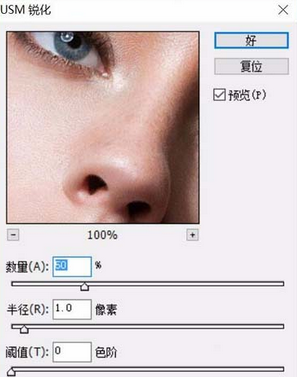 2、锐化。如果觉得人的五官不是很突出,你可以使用一下锐化工具让人的眉毛等细节部分更加的突出。